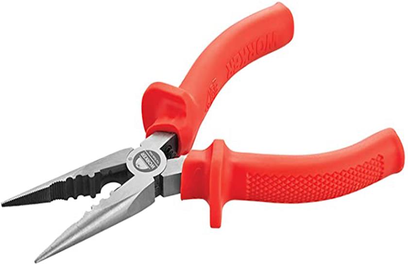 alicate eletricista 6", com isolação de 1000v da Worker, é feito em aço cromo vanádio acabamento polido, cabo isolado.