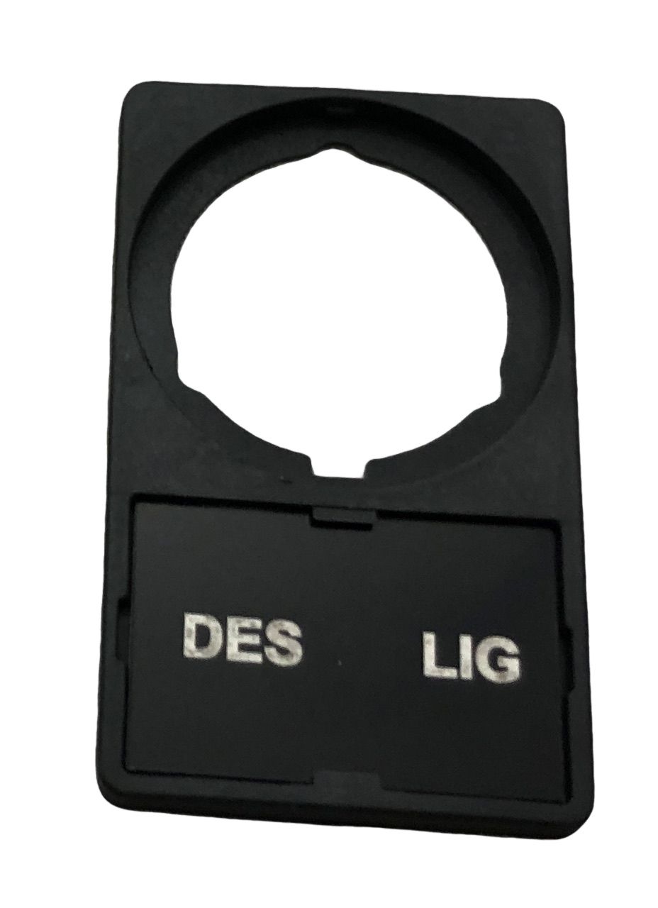 Porta Plaqueta Weg, identificação de painéis industriais com inscrição gravada Desliga-Liga furo 22mm. USO EM AUTOMAÇÃO INDUSTRIAL.