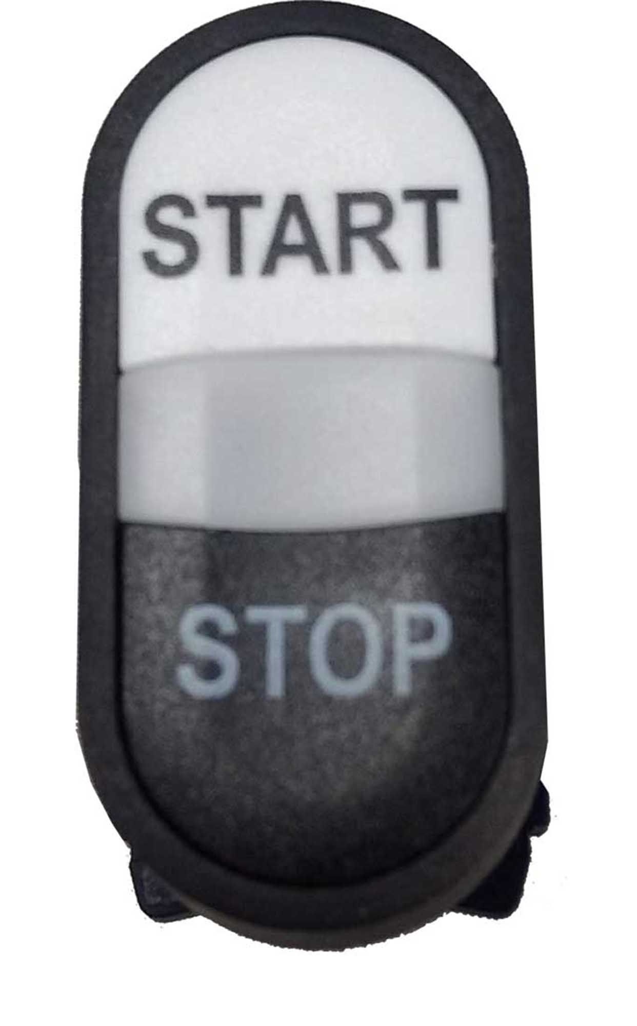 Botão duplo pulsador gravação start(liga)-stop(desliga) para uso em aplicações para acionamento de contatores e inversores (modo remoto) Composto de contatos NA/NF- Contato de prata.